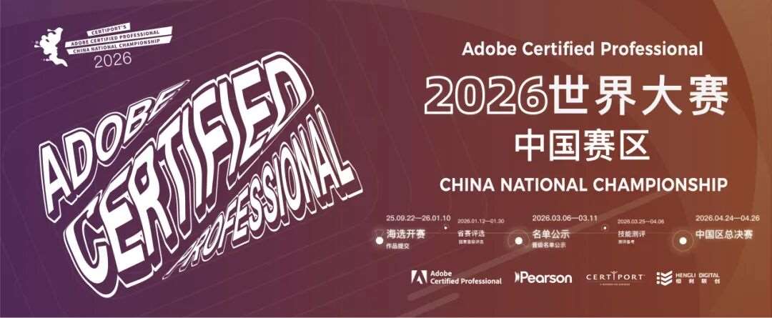 2026 Adobe Certified Professional世界大赛中国赛区省赛评委招募已进入倒计时阶段!组委会此前已收获学界大咖、业界精英的投递,每一份申请单都承载着大家对赛事的认可与支持。在此,我们向尚未完成报名的优秀专家们再次发出诚挚邀约,诚邀您把握最后的报名时机,加入省赛评审团,与行业同仁共鉴设计新锐力量!