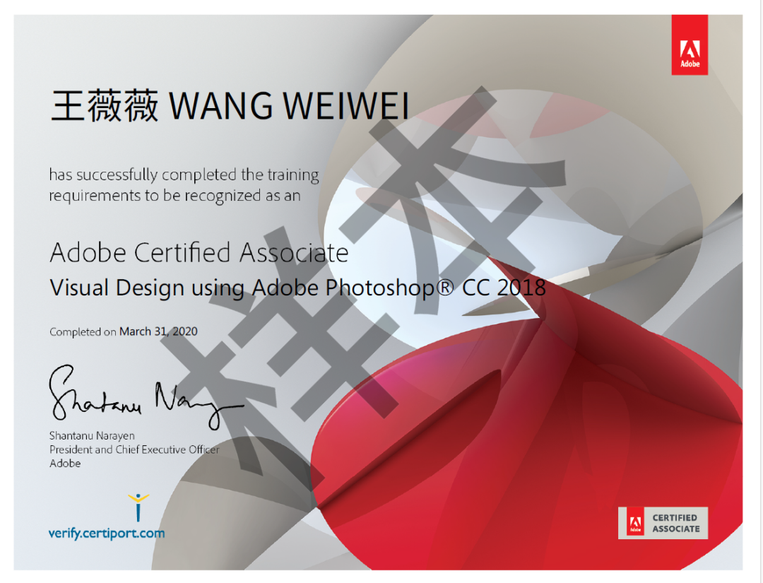 Adobe国际认证官方证书样张